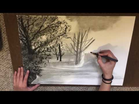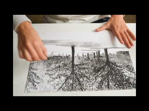 “I create pieces using charcoal to strip down my work to the basic elements of light and dark, texture, and above all, detail. While I appreciate using other media, working with mediums that limit my color palette to black and white is challenging. I see powerful detail in landscapes and I want my work to encourage my viewers to go out and observe the natural environment. My goal is to capture a scene that feels so simple, yet contains so much.”